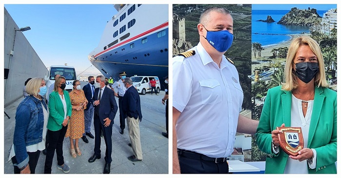 MOTRIL. La primera autoridad municipal, Luisa María García Chamorro, ha asistido al acto de recepción del primero de los grandes cruceros que llega a la dársena portuaria motrileña, desde el inicio de la pandemia.
