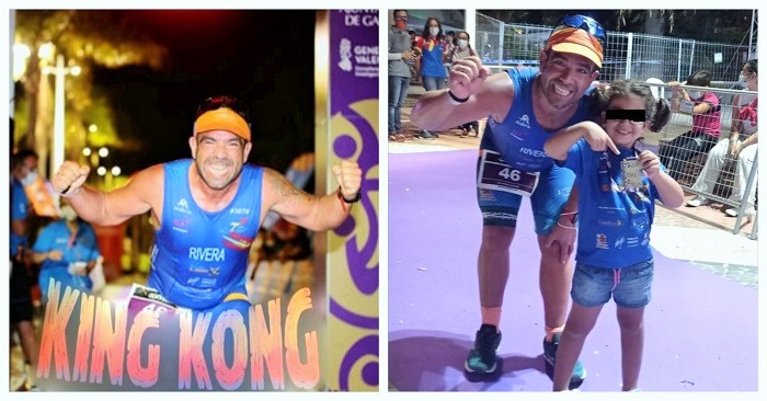 Ya en la parte final del Ironman y antes de comenzar el Maratón, el King Kong de Velilla fue más «King» que nunca cuando una señora del público le gritó un piropo debido a los tatuajes que porta. Ahí ya supe que terminaría la prueba pese a que, los participantes de un Ironman siempre dicen que el Maratón se convierte en la batalla de Morannon frente a la Puerta Negra de Mordor y su pu** madre. 4h 57′ después, y tras un diálogo fluido de José Emilio con sus propias piernas, el principiante en Ironman «Rivera» se plantaba con los dos pies clavados en la meta, los puños en alto, los ojos cerrados, el mono azul del Nazarí sudado, reluciente y espléndido que debería sacudir el sistema nervioso de todos los patrocinadores del club.