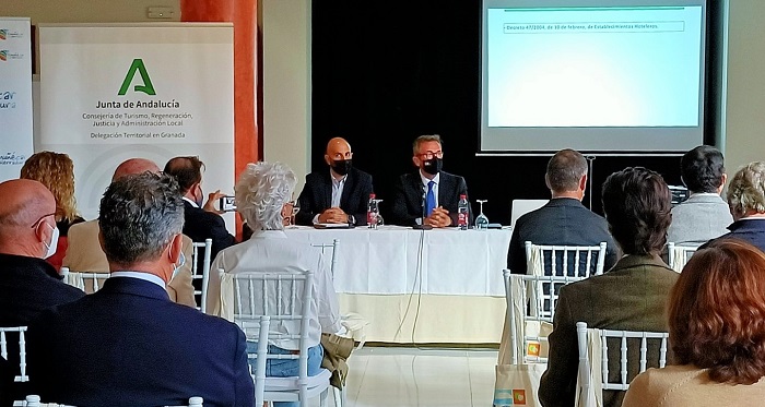 El delegado territorial de Turismo de la Junta en Granada, Gustavo Rodríguez, ha participado hoy en las ‘Jornadas informativas sobre la adaptación de alojamientos y ayudas a empresas turísticas’, celebradas en el Hotel Victoria Playa de Almuñécar con el respaldo y patrocinio de esta Consejería, para conocer las inquietudes del sector y el empresariado, así como para abordar los distintos decretos que ha aprobado el Gobierno andaluz para mejorar la competitividad de estos establecimientos.
