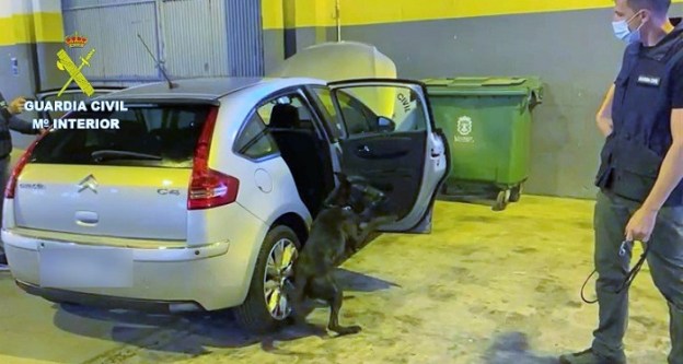 La droga fue descubierta por Júper, un perro antidroga del Servicio Cinológico de la Guardia Civil, en uno de los turismos que se inspeccionaron durante el control de pasajeros y vehículos del buque BAHAMA MAMA procedente de Melilla.