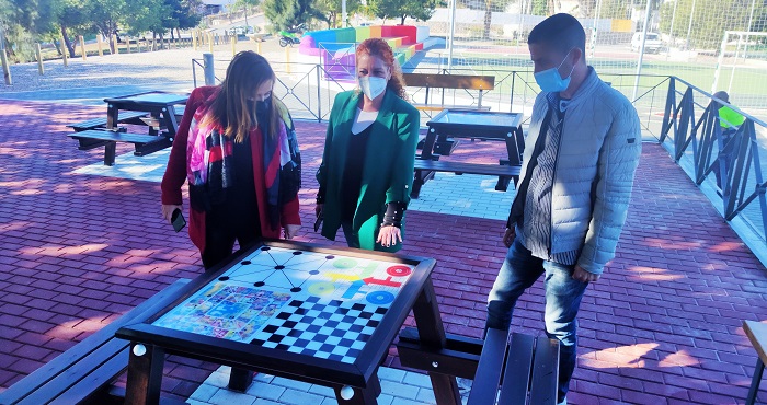 La nueva zona de ocio se ha adoquinado y se ha delimitado, también por seguridad, con barandillas. Se han instalado mesas en las que aparecen los juegos más tradicionales como la oca o el parchís y, con losetas de color blanco y negro, se ha dibujado un tablero en el suelo de damas/ajedrez. Se han colocado, además, bancos y papeleras, se ha instalado una fuente y se ha mejorado la instalación eléctrica dando más luz a este espacio. García ha querido destacar que todo este trabajo lo han realizado los propios trabajadores municipales y muchos de ellos con materiales que ya tenían.