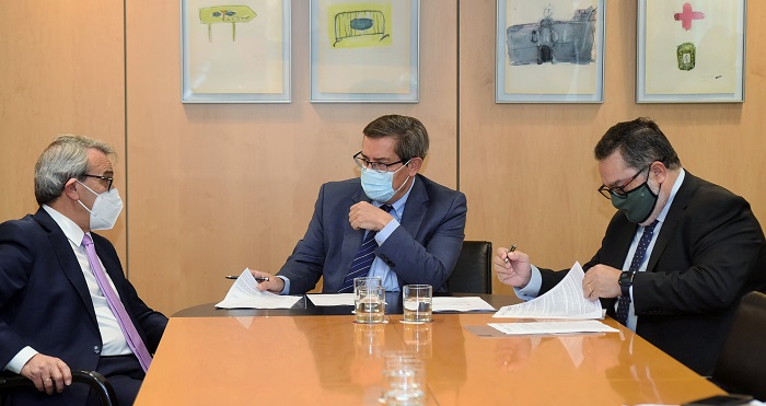 El contrato ha sido formalizado por el presidente de la Diputación de Granda, José Entrena, y por el presidente de la entidad financiera, Antonio León, y por el director general, Jerónimo Luque.