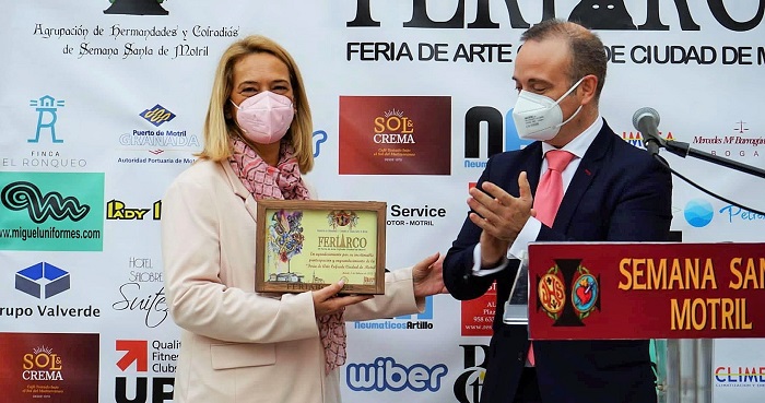 La alcaldesa de Motril, Luisa María García Chamorro, felicitó este domingo a la Agrupación de Hermandades y Cofradías de Semana Santa de Motril, durante la clausura de Feriarco 2022. Para la alcaldesa, que calificó como de «épico» el colofón de la Feria de Arte Cofrade de Motril, con la actuación de la Agrupación Musical Virgen de los Reyes de Sevilla, «nuestra ciudad revalida no sólo el valor de su semana santa, sino su propio poder de convocatoria en este caso gracias a la agrupación, a todas las cofradías y a muchísimas personas que han puesto mucho corazón en que esto sea un éxito», dijo García Chamorro.