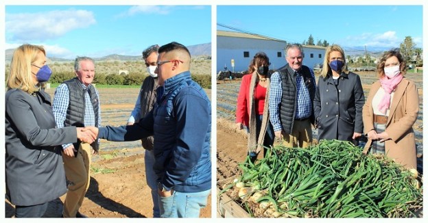 En este caso, y durante una visita a un plantío de cebolletas de la empresa Proani, ubicado en Las Ventillas, y que produce miles de kilos destinados al mercado nacional, en dos cosechas anuales, la alcaldesa pudo comprobar cómo el laboreo requiere de medio centenar de trabajadores, tanto a pie de campo como en almacén. La alcaldesa recordó «el máximo apoyo de la institución municipal a estos agricultores» y mostró su confianza en que «muy pronto haya muy buenas noticias en referencia a la ampliación de zonas cultivables».