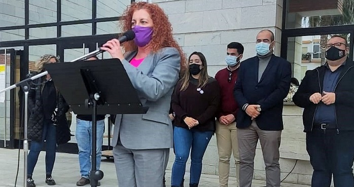 SALOBREÑA. Paula Mirón Cordo, profesora de inglés del IES Mediterráneo ha sido la encargada de leer la Declaración Institucional con motivo del 8 de marzo, Día Internacional de la Mujer, en el acto oficial celebrado hoy a las puertas del Ayuntamiento de la Villa.