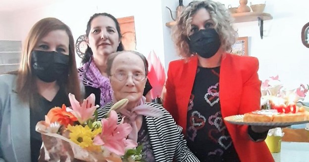 Madre de 5 hijos y abuela de 15 nietos, 25 bisnietos y tres tataranietos, la vecina de Salobreña Elvira Espinosa Rodríguez ha cumplido 100 años y el Ayuntamiento del Salobreña, a través de las concejalas de Bienestar Social, María José García, y de Cultura y Economía, Belén Sánchez, la ha felicitado con un pequeño detalle y una tarta.