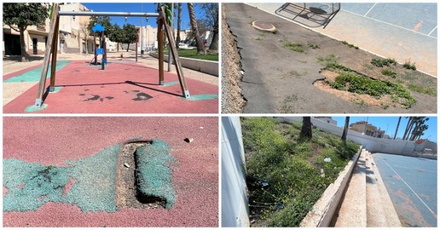 MOTRIL. Alicia Crespo se hace eco de la preocupación vecinal «porque los columpios y el suelo están rotos y descuidados desde hace meses. También porque crecen sin control malas hierbas en los alrededores y los jardines de la pista deportiva, algo que, además, ha dado lugar a la aparición de plagas de mosquitos y roedores».