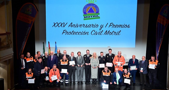El delegado del Gobierno, Antonio Granados, ha recibido el ‘Premio Protección Civil Motril’ que otorga la Agrupación de Voluntarios de Protección Civil de Motril en el acto de conmemoración de su 35 aniversario, que se ha celebrado en el teatro Calderón de la Barca de Motril.