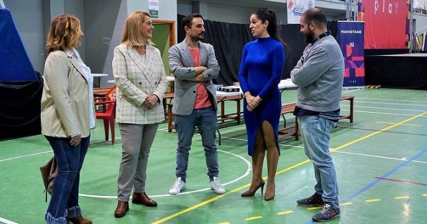 MOTRIL. Luisa García Chamorro, acompañada por los concejales Susana Muñoz y Alejandro Vilar, responsable de Juventud, visita Play Wiber #Gam-Party.