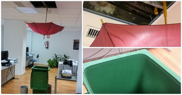 MOTRIL. Gregorio Morales, concejal socialista, afirma que «es increíble que la alcaldesa no haya sido capaz de solucionar un problema que viene de lejos» y lamenta «las condiciones en que se atiende al público y trabajan los empleados municipales, con paraguas boca arriba y contenedores de basuras para que no les caiga agua ni trozos del techo».