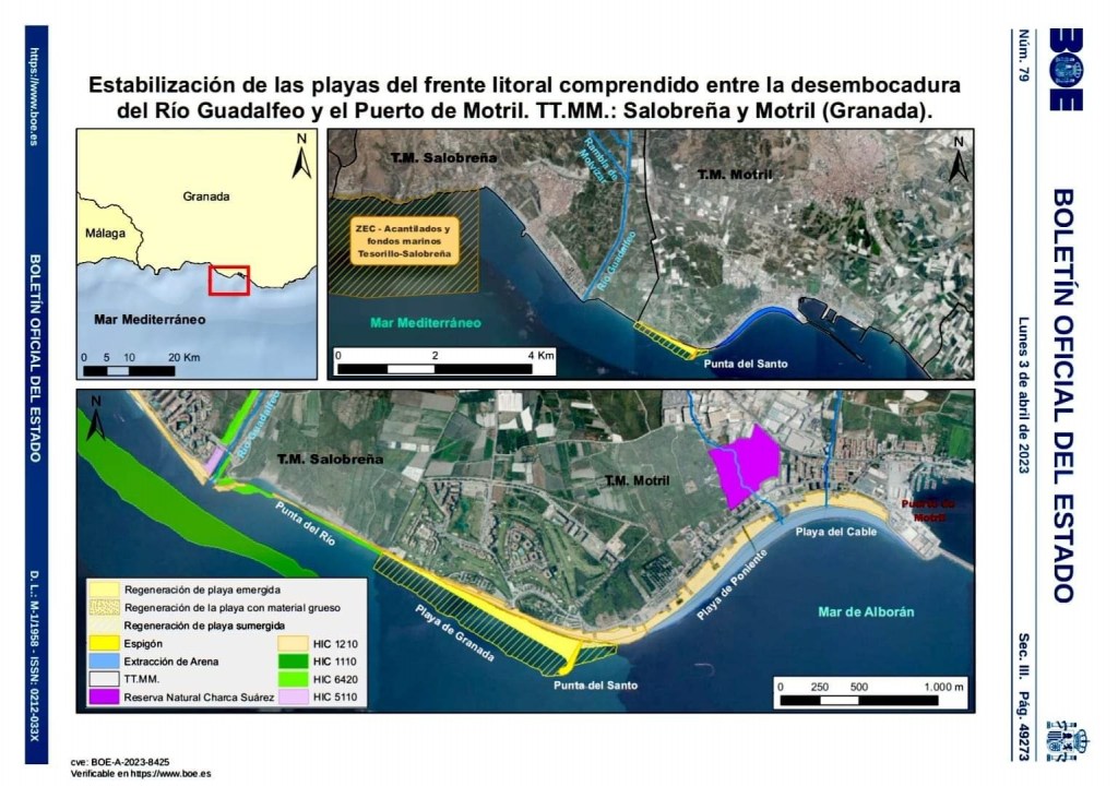 GRANADA. El Boletín Oficial del Estado (BOE) publica hoy la Resolución de la Dirección General de Calidad y Evaluación Ambiental del Ministerio para la Transición Ecológica y el Reto Demográfico, de fecha 27 de marzo de 2023, por la que se formula declaración de Impacto Ambiental del Proyecto “Estabilización de las playas del frente litoral entre la desembocadura del rio Guadalfeo y el Puerto de Motril. TTMM Salobreña y Motril (Granada)”.