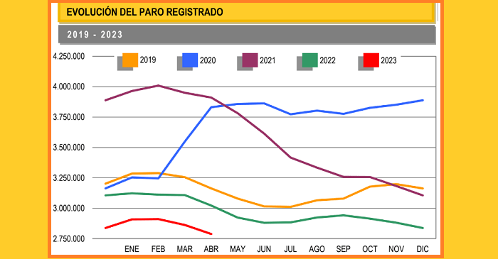 El paro en Granada se ha reducido en 1.812 personas durante este mes de abril, el paro interanual ha descendido en 5.495 personas lo que significa un -6,62% menos que en abril de 2022.