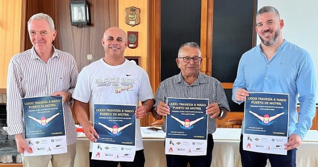 El teniente de alcalde de Deportes, Daniel Ortega Moreno, el presidente del Real Club Náutico de Motril, Antonio Gutiérrez Maldonado, el vocal responsable del club de natación del Club Náutico, Antonio Puertas, y el director técnico de la sección de natación, David Romero, han presentado hoy la LXXXII Travesía a Nado del Puerto de Motril.