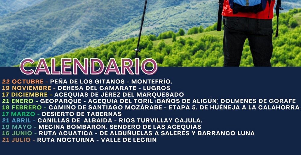 El programa está compuesto por 10 rutas que comenzarán con la “Peña de los gitanos” en Motefrío el próximo 22 de octubre, y finalizará el 21 de julio con una ruta nocturna al Valle de Lecrín. Esta edición se centrará en la zona norte de la provincia de Granada, además de una ruta a Almería, al desierto de Tabernas, y otra en Málaga por los ríos Cájula y Turvilla. Como novedad este año además se realizará un viaje a la Sierra Subbética de Córdoba.