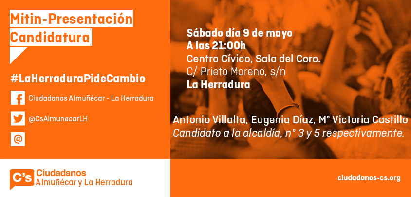 LA HERRADURA. Ciudadanos Almuñécar y La Herradura dará el pistoletazo de salida de la campaña electoral con un Mitin – Presentación de Candidatura en La Herradura el próximo sábado 9 Sigue leyendo