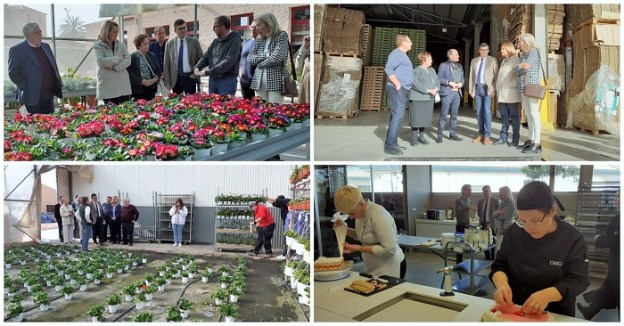 Durante el recorrido por los CEE dedicados a la actividad de la madera y la producción de plantas y venta de herramientas para ese menester, los representantes de las administraciones autonómica y municipal han estado acompañados por la presidenta de Aprosmo, Trinidad López. En el centro de madera, las 25 personas trabajan en la fabricación de envases de madera para frutas, hortalizas y pescado; palets agrícolas e industriales; tapas de cartón compacto y de aglomerado; y en la fabricación de cuñas de madera y el montaje de box, y con ello abastecen a almacenes de frutas y hortalizas, la fábrica de papel y el puerto motrileño, entre otras sociedades mercantiles.