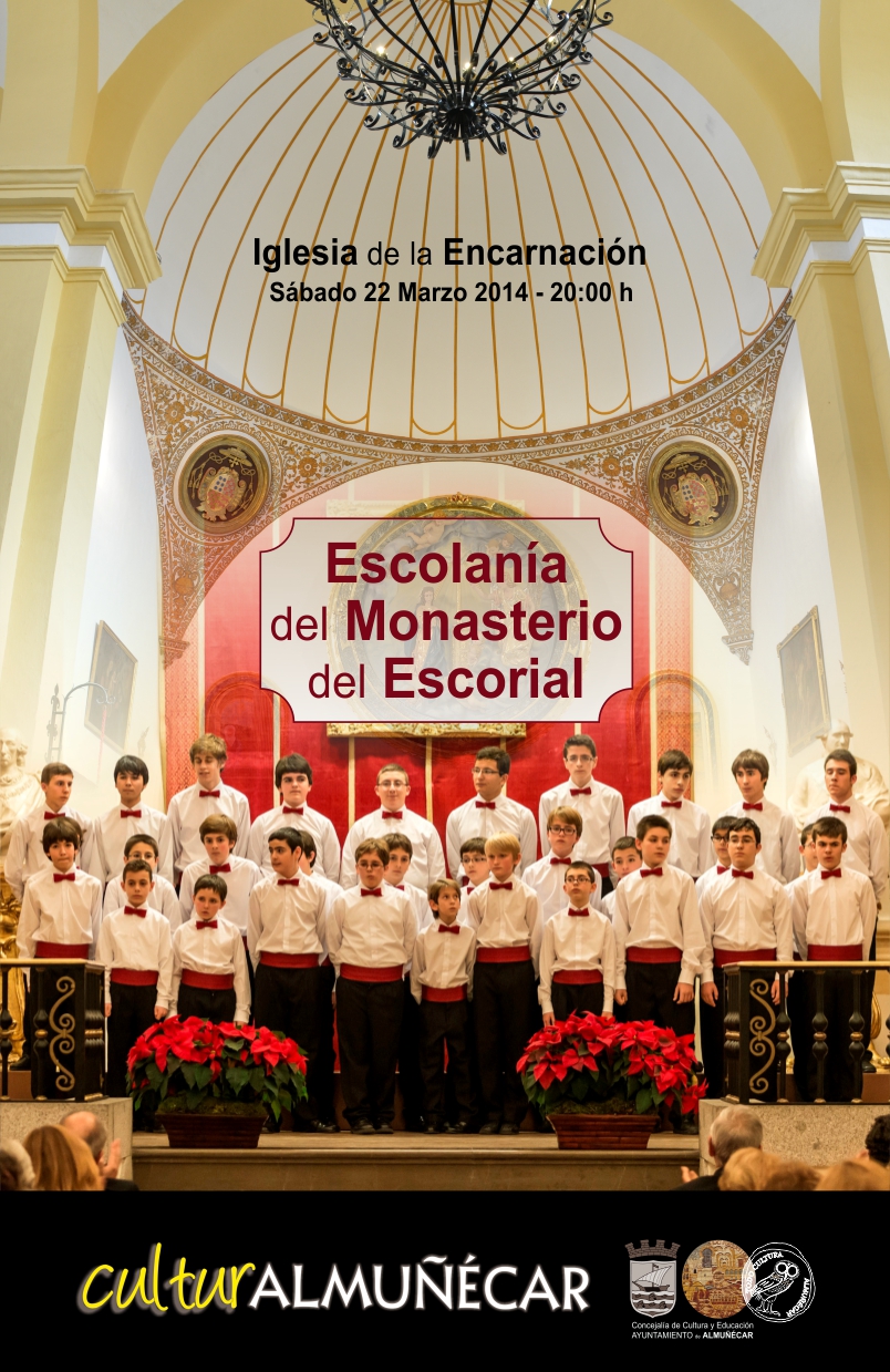 ALMUÑÉCAR. La iglesia Parroquial de la Encarnación de Almuñécar acoge este sábado un concierto de la Escolanía del Monasterio de San Lorenzo del Escorial. El acto, organizado por la Concejalía de Cultura del Ayuntamiento sexitano con la colaboración de la Asociación de Todo Cultura, tendrá lugar a partir de las 20 horas.