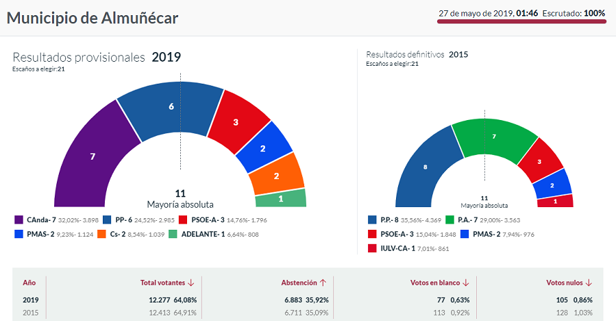 ALMUÑÉCAR. Convergencia Andaluza gana las elecciones municipales con 7 concejales; el PP pierde 2, se queda con 6 concejales; el PSOE obtiene 3 concejales, los mismos que Sigue leyendo