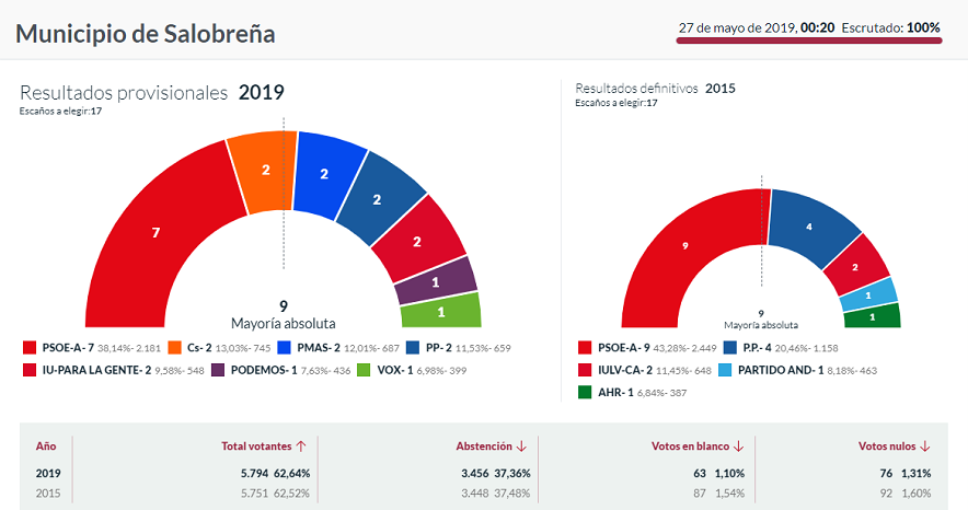 SALOBREÑA. Buenos resultados para el PSOE y María Eugenia Rufino que, a pesar de perder la mayoría absoluta alcanzada en las pasadas elecciones municipales de 2015, Sigue leyendo