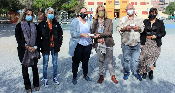 MOTRIL. La alcaldesa, Luisa María García Chamorro, asistió a la entrega del material divulgativo al colegio Príncipe Felipe, en la primera acción de una campaña de Sigue leyendo