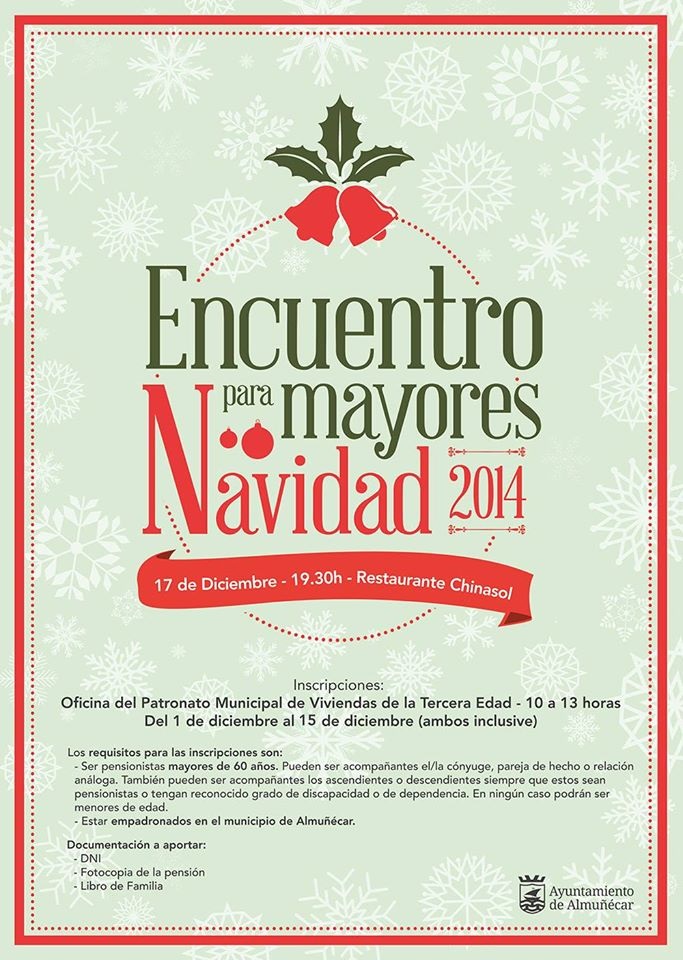 ALMUÑÉCAR. El Ayto. de Almuñécar, a través de la Concejalía de Bienestar Social e Igualdad, que dirige María del Carmen Reinoso, celebra el Encuentro de Mayores “Navidad 2014” este próximo miércoles día 17, a partir de las 19:30 horas, en el restaurante Chinasol.