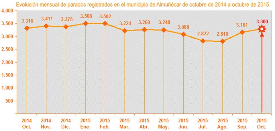 ALMUÑÉCAR. El número de desempleados registrados en octubre en el municipio de Almuñécar, según datos publicados por el Observatorio Argos, dependiente de la Junta de Andalucía, fue de 3.300 parados, Sigue leyendo