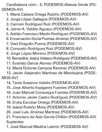 ALMUÑÉCAR. El BOE de este 26 de abril recoge en su publicación las dos candidaturas, la de Izquierda Unida denominada ‘Almuñécar Unida para la Gente (Para la Gente)’ y la de ‘Podemos-Alianza Verde (Podemos-AV)’.
