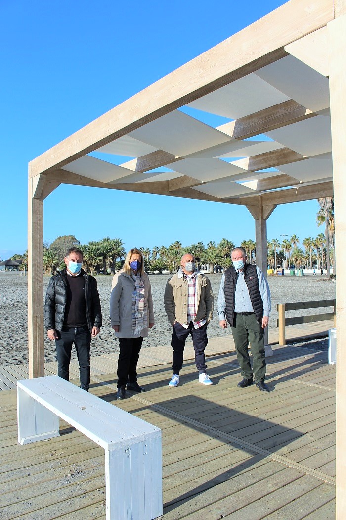 La senda litoral motrileña continúa avanzando en su construcción, impulsando con ello un cambio radical en la accesibilidad de Playa Granada y Playa de Poniente. Los últimos tramos de este singular itinerario blando ya han llegado a esta última zona donde, frente al los campings, se ubican ya áreas de pasarela y de descanso sombreado, además de las primeras construcciones de modulos varios; todo ello con un cuidado diseño, de inspiración moderna y con material cien por cien natural «que no solamente cumple su función accesible, sino que trae consigo un cambio de imagen de la playa ciertamente sorprendente», ha dicho la alcaldesa, Luisa María García Chamorro, quien hoy ha visitado la zona junto a los tenientes de alcalde de Turismo, José Lemos, y de Urbanismo, Antonio Escámez.