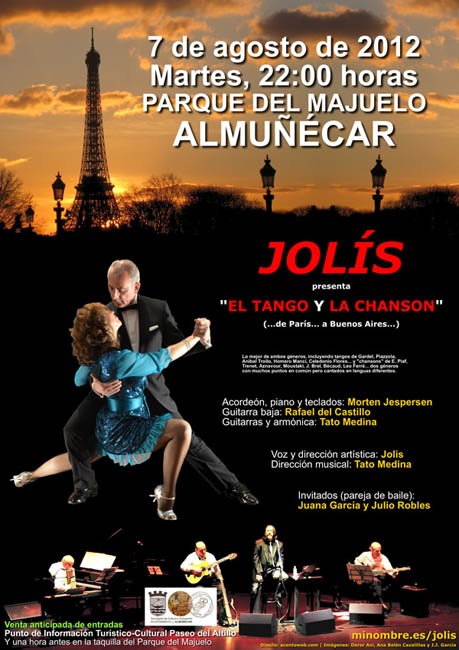 El cantante granadino Jolís presenta en Almuñécar su espectáculo «El Tango y la Chanson «, en el cual desarrollará los mejores clásicos del repertorio francés con canciones de Edith Piaf, Jacques Brel, Charles Aznavour, Leo Ferrer, junto con los tangos más destacados de Carlos Gardel, Astor Piazzola, Aníbal Troilo, entre otros.